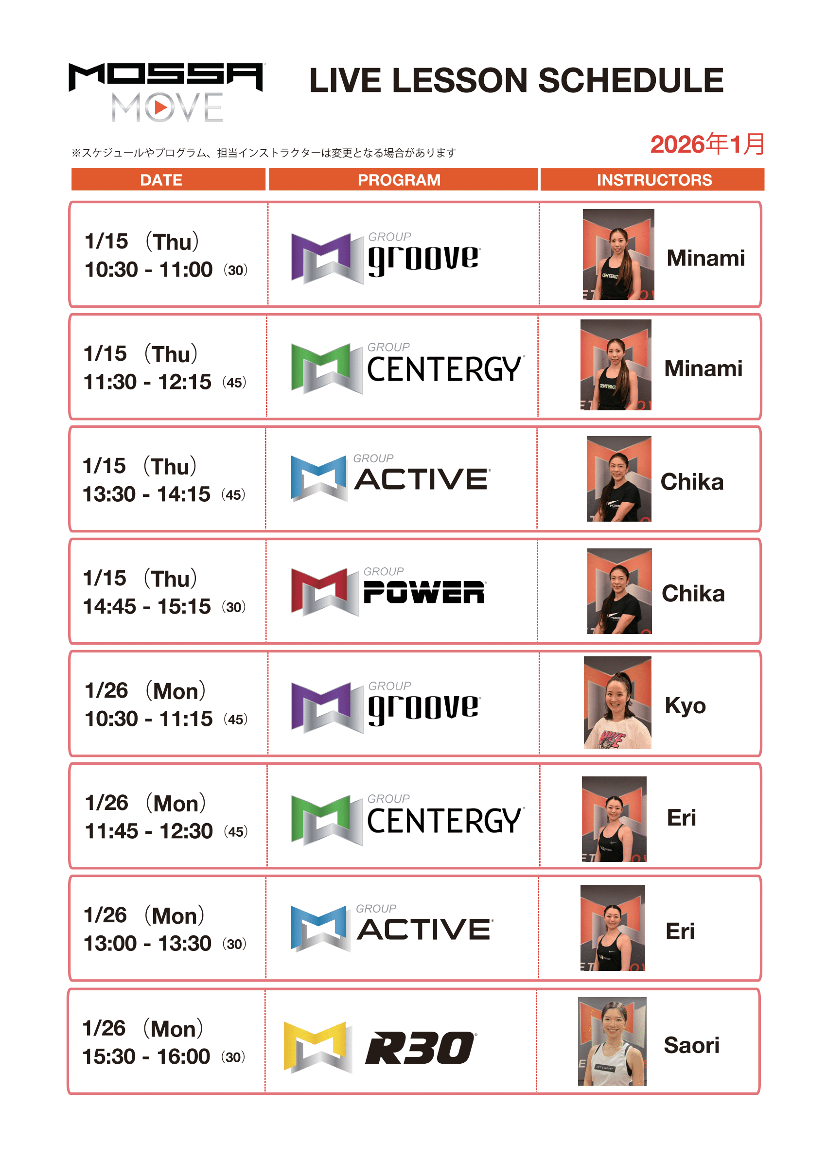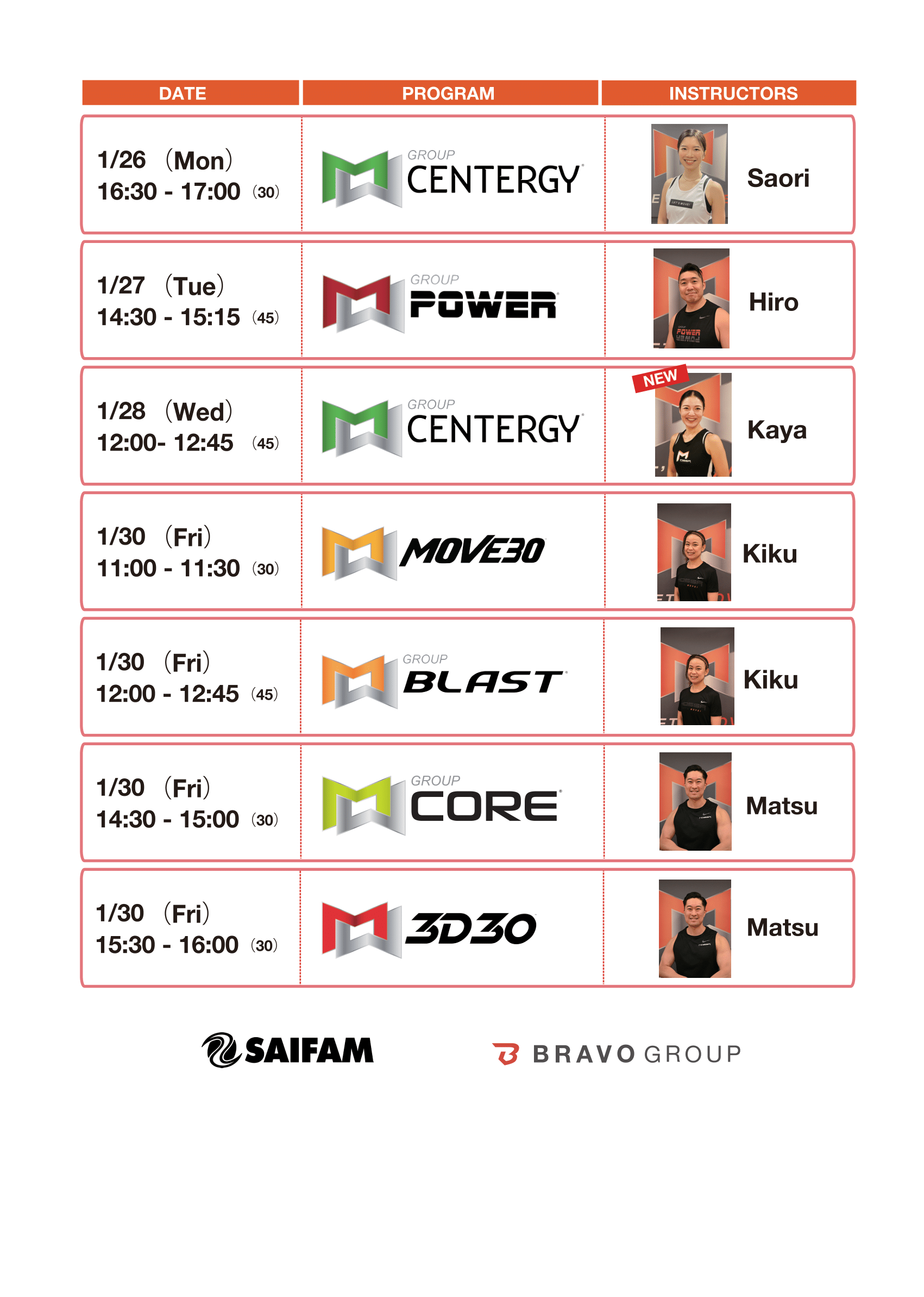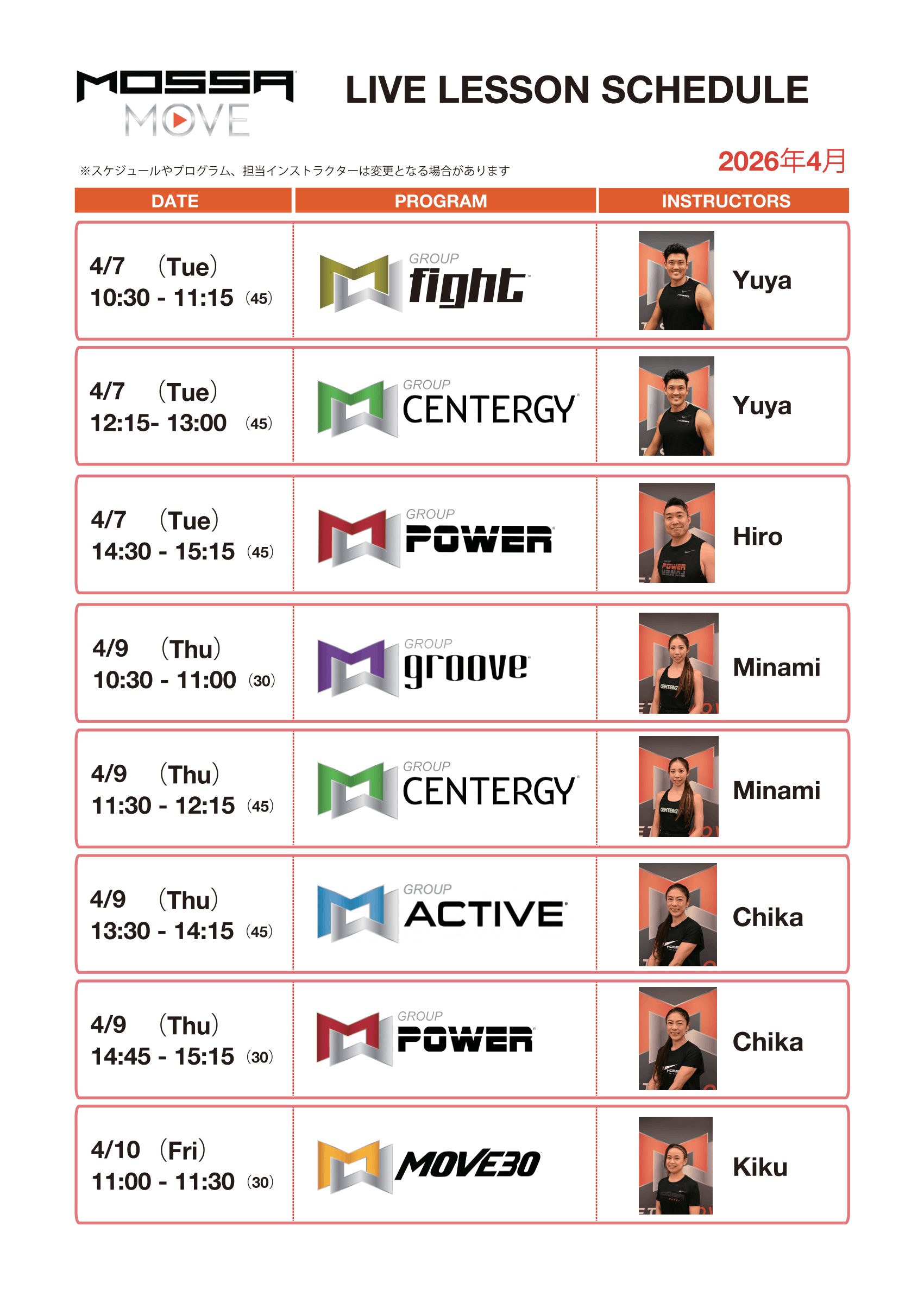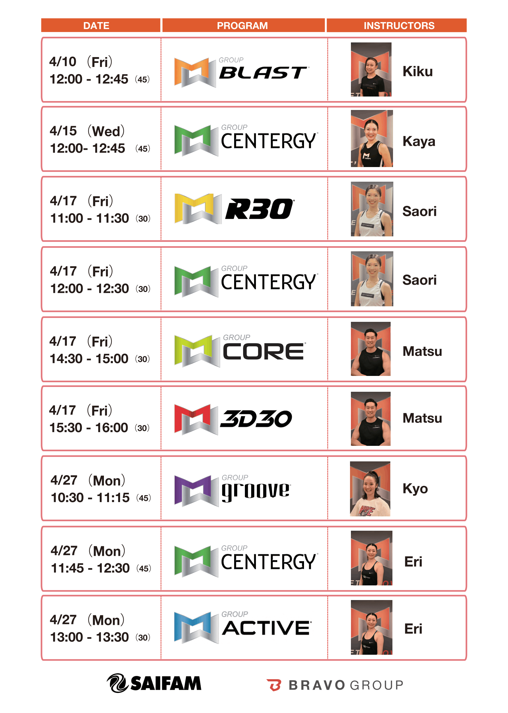 ※スケジュールやプログラム、担当インストラクターが変更となる場合があります。